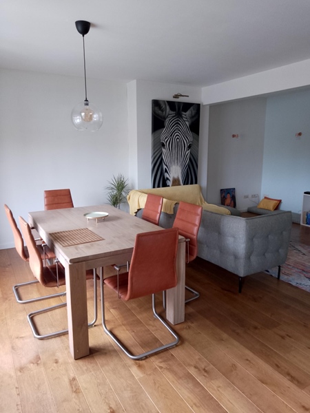 The apartment is within walking distance (approx. 10 minutes) of Hasselt station and city center. It's a spacious apartment equipped with all amenities, including a washing machine, dryer, bathtub, and Wi-Fi. The bathroom, kitchen, and living room are shared. Residential use is not possible. Free parking is available.