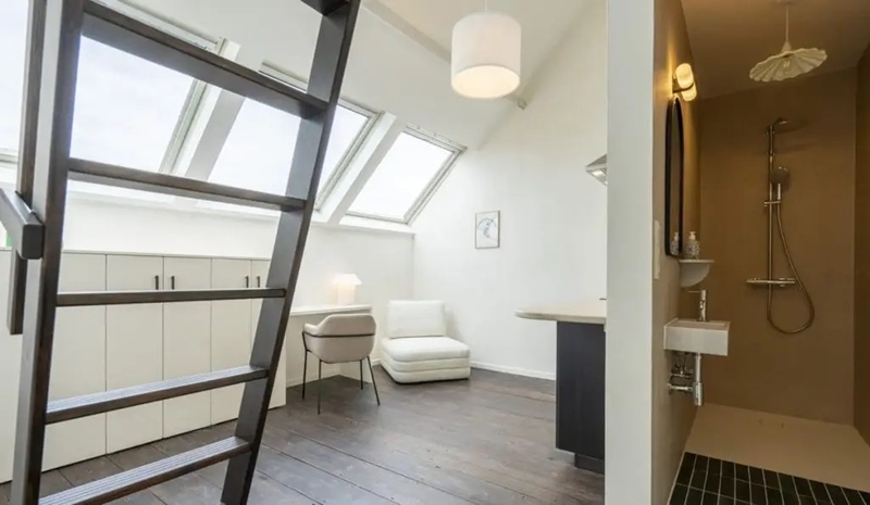 Beautiful duplex room with a private bathroom, built-in wardrobe, built-in desk, and double bed. No need to bring much: it's move-in ready.