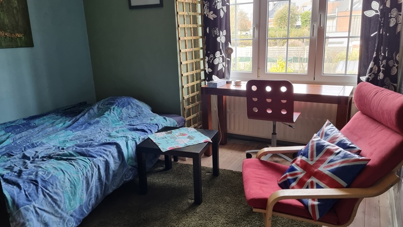 Large room with bathroom for rent within walking distance of shops and the train station in Mol. The kitchen is shared.
