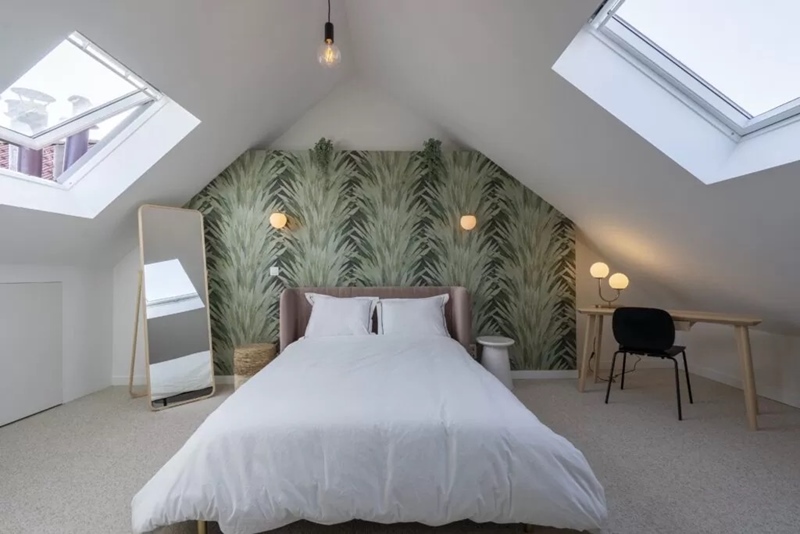 You will stay in the largest room of the house: the entire attic floor with a surface of 25m². The room is furnished with a double bed, wardrobe, desk and sitting corner.
