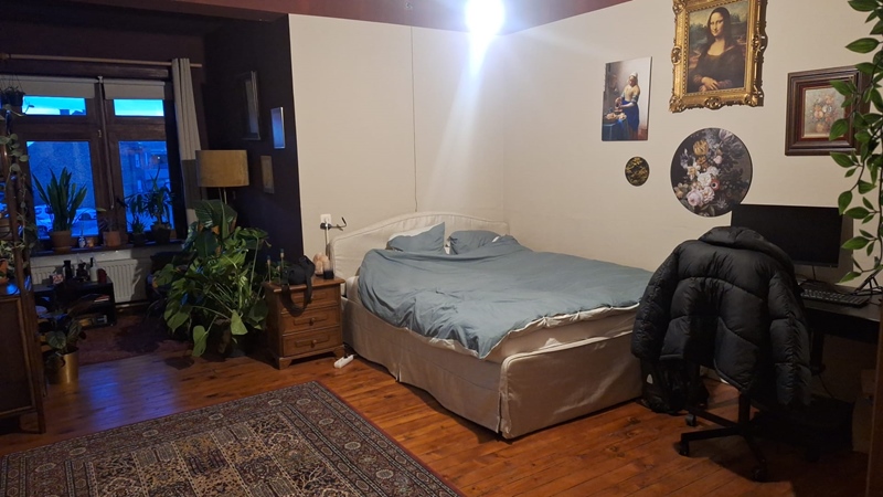 Une simple colocation de 4 personnes (pas un habitat groupé) dans une belle demeure années 1940 avec jardin et espaces partagés agréables. Les colocataires sont ouverts aux repas occasionnels et activités ensemble (jeux, sorties), mais il n'y a ni projets communs structurés (potager, etc.), ni grande salle pour la biodanza, ni dimension communautaire mature que tu cherches. À 480€/mois c'est accessible, proche de Leuven, mais cette petite colocation conviviale ne correspond pas vraiment à ta vision d'un habitat groupé avec valeurs partagées et projets communs.