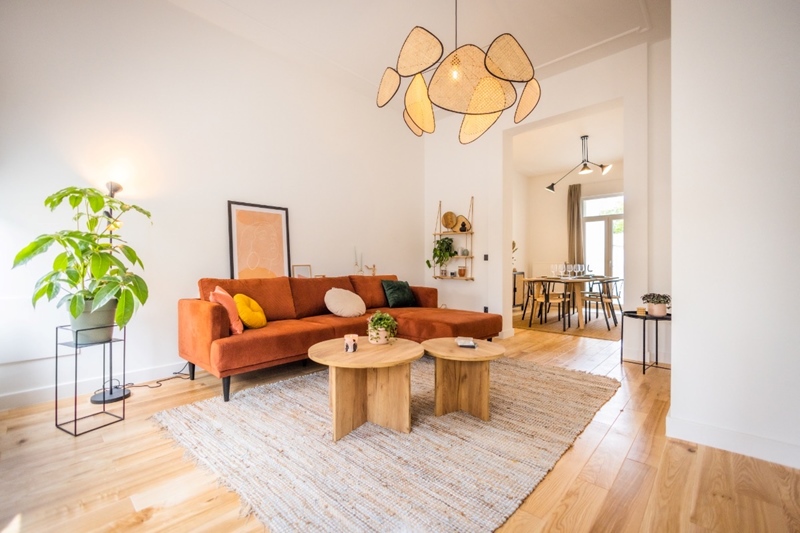 A beautifully renovated and furnished house with six bedrooms with en-suite bathrooms, cozy living areas and a nice city terrace.